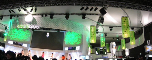 マイクロソフトブースには発売間近の「HALO3」や「エースコンバット06」「三国無双5」「ビューティフル塊魂」「PGR4」「デビルメイクライ4」「バーチャファイター5」「ロストオデッセイ」「ガンダムオペレーショントロイ」などなど遊べるものから映像だけのものまで数多くありましたが、どれも行列が出来ていましたね。お目当ての「NINJA GAIDEN2」と「ASSASSIN'S CREED」はレーティングの関係なのか小部屋?に入らないと見ることができないようになっていたので残念ながらあきらめました。